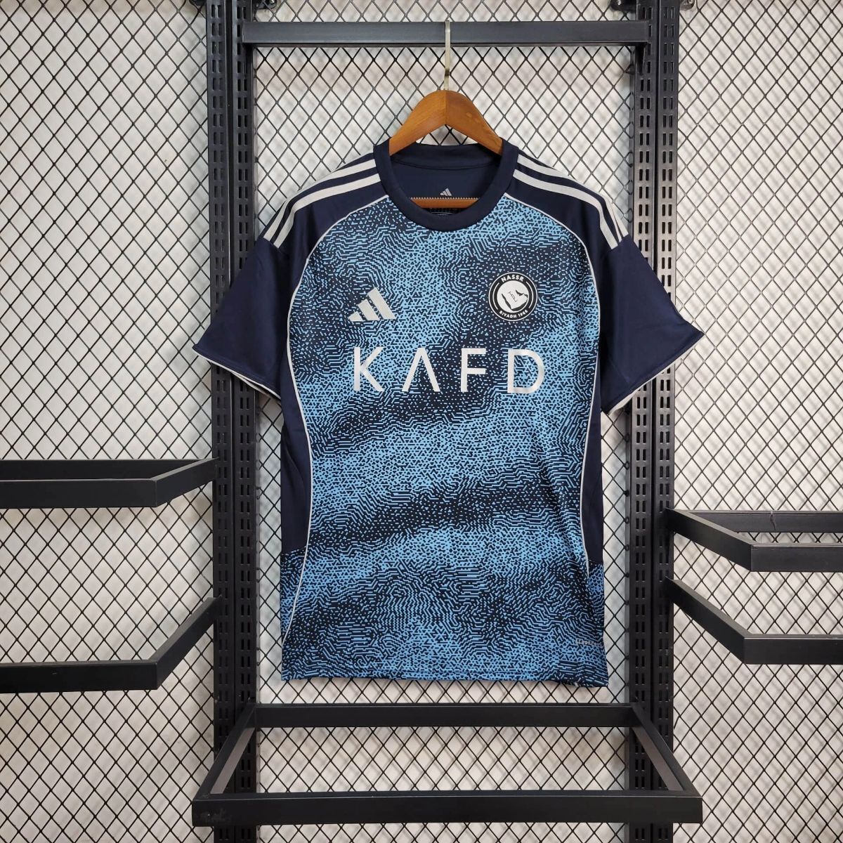 Show your support in style with the Al Nassr Away Jersey 2025 26 Season, designed with a striking blue pattern and modern detailing. This away kit reflects the club’s bold football identity while delivering everyday comfort. Crafted from lightweight, breathable fabric, it keeps you cool during match days, training sessions, or casual wear. Finished with premium sponsor branding and the official club crest, this jersey is a perfect choice for loyal supporters of Al Nassr and football jersey collectors.